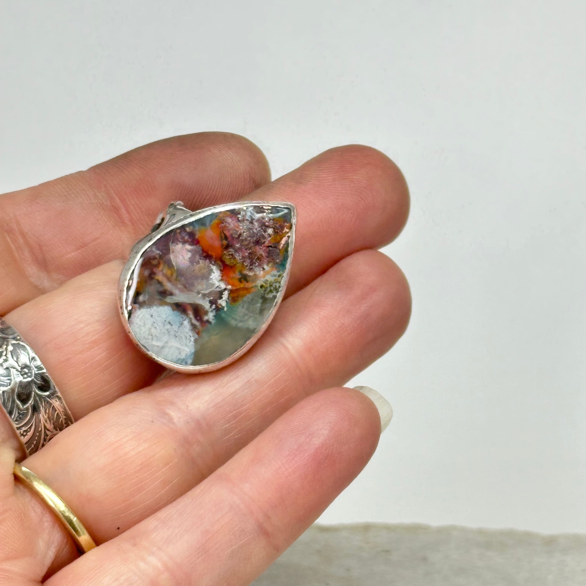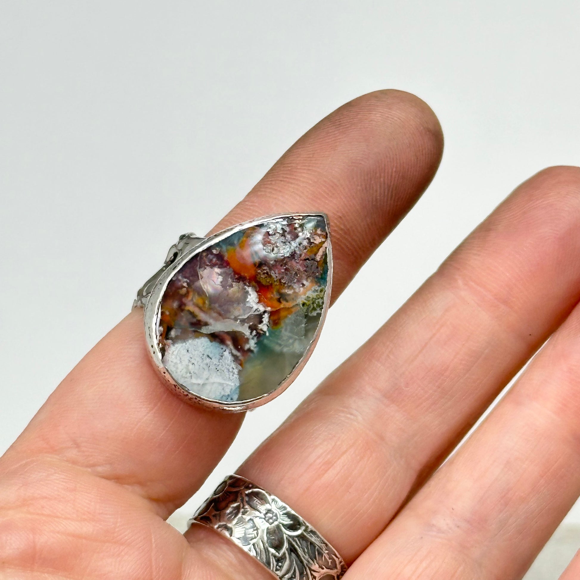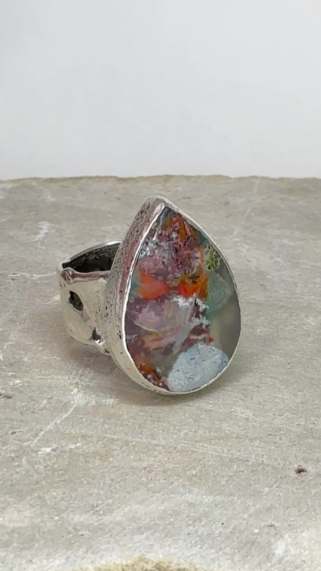 Copper moss agates are my all-time favorite stones! The stone in my copper agate statement ring has phenomenal depth and a striking combination of colors including orange, green and white. It's a showstopper, for sure!